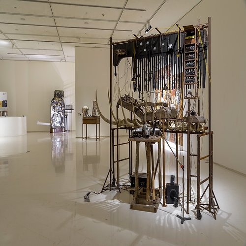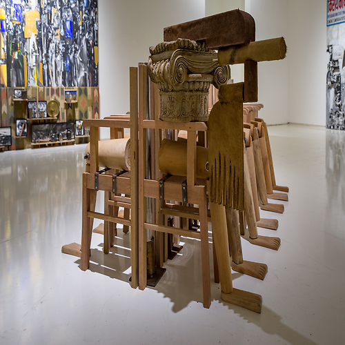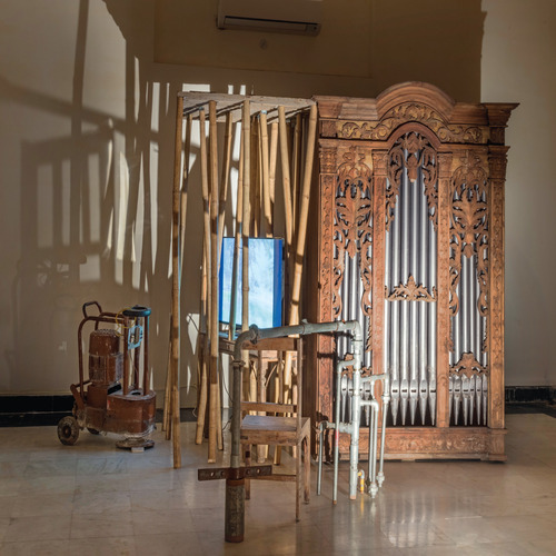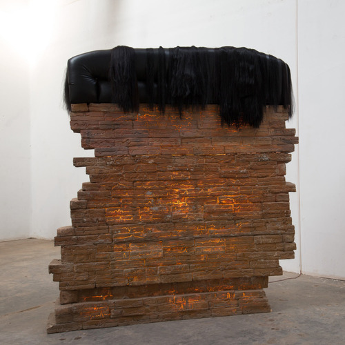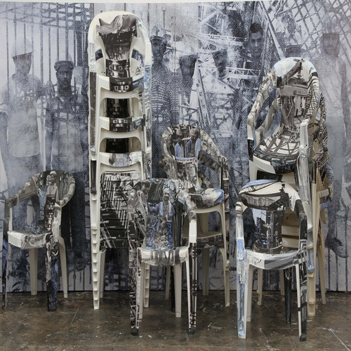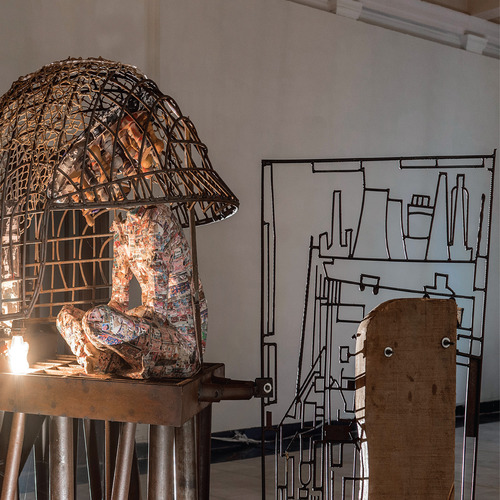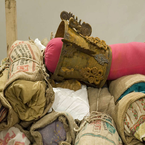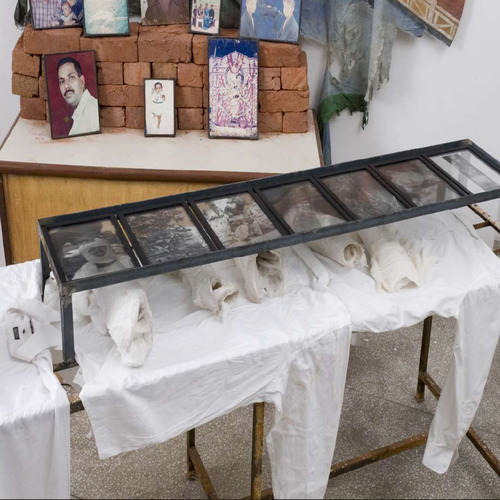 Trained in both India and Paris, for many years Probir Gupta practiced a rectified form of abstract painting, rigorous yet distant form his interests in Marxist thinking and subaltern discourse. In he mid-to-late 1990s, while in his late 30s, Probir instinctively began to forge a route from which he could address the subjects of human rights, civics, class and communal tensions, or labor relations through forms, materials and images. The artist was led to discover the beauty and power to be found in industrial debris, the metaphors for human suffering reflected in the scarred waste of military equipment. At the same time , the production of art took a back seat to community service as Probir became engaged with collaborative and educational forums, working with both children and craftspeople to examine social inequities, historical struggles and the politics of representations.